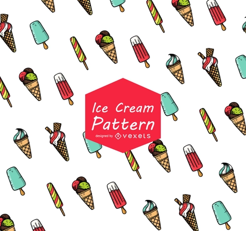 Cartoon pattern featuring delicious ice cream treats on sticks or waffle cones. Perfect for creating trendy designs on t-shirts, textiles, gift wrap, phone cases, and a variety of prints. ice-cream cream pattern Sweet treat repeat pattern