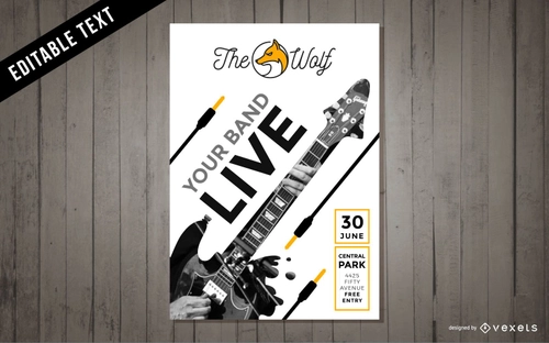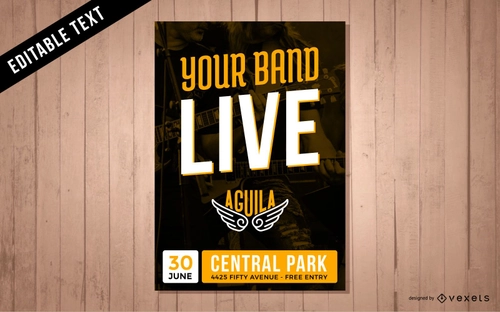 Editable text included in this original design music concert poster featuring a band's live performance in Central Park. Perfect for promoting music events and materials with a unique touch. Font is also included for customization. music concert band Live band event notice